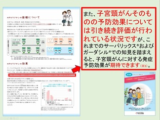 厚労省が保護者向けに作成(2014年)した文書には、「子宮頸がん予防ワクチンは新しいワクチンのため、子宮頸がんそのものを予防する効果はまだ証明されていません」と記されています。その後に作成したリーフレットでも、「引き続き評価が行われている」としていますから、堺市医師会の「予防できます」は厚労省見解と異なるのです。