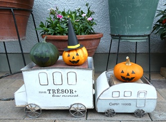 今朝、事務所前に出て気づいたのですが、花鉢の側にハロウィンのカボチャが飾られていました。家族に確認してみると、どうやらどなたが通りがかりに置いてくださった模様です。ありがとうございました。「地べたではかわいそう」と妻が飾り台を用意しました。