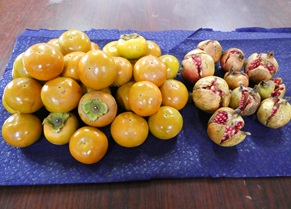 お隣から、たくさんの柿と石榴をいただきました。南花田町のご住家の庭で実り、収穫されたそうです。