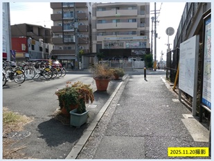 ところが、並べられたポットの植物は何の手入れもしないまま放置され、哀れな姿をさらしています。駅前に建設局が確保している250㎡の用地も、シェアサイクルステーションとして使っているものの荒れ放題。見苦しい限りです。