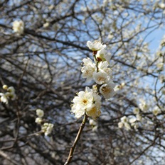 カキツバタ園にはアオサギの姿があり、また双池橋の南側では満開の白梅にカメラのレンズを向けながら歩きました。