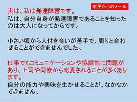 さらに、メールを送ってこられて市民からは「障害者虐待」についてもご意見がありました。関係機関のネットワーク強化に加え、当事者の意向を把握して対応するように求めました。