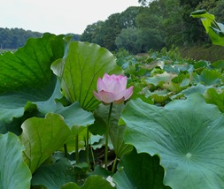 九州旅行やその途中で激しくなった腰痛のため、ずっと足が遠のいていた大泉緑地を歩きました。ちょうど3週間ぶりです。「もう終わっている」と思っていたハスの花にも出会うことができました。まだいくつかのつぼみも見ましたが、どれも葉の下にあるので、精一杯背伸びして咲いてくれたこの一輪が今季の見納めになるかもしれません。また、木々の間から聞こえてくる声は秋蝉に代わっており、草間の声は秋虫のようです。猛暑つづきですが、今朝は風もやや涼やかで、季節が変わろうとしている空気を満喫できました。