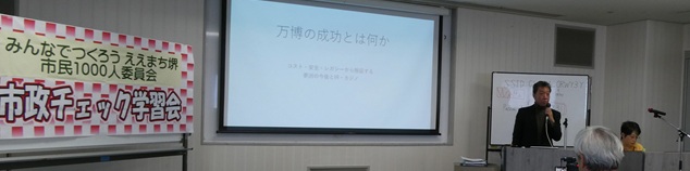 西文化会館で開催された、市民1000人委員会の市政チェック学習会「万博を検証する」に参加。「万博の成功とは何か」とのテーマで元大阪日々新聞記者の木下巧さんが講演。続いて、森田晃一市議(万博遠足)と小堀セイジ市議(万博関連支出)がそれぞれの課題について報告しました。2557万人余りの一般来場者があったという大阪関西万博ですが、さて本当に「成功」と言えるか。間もなく始まる11月定例会では、おそらく最大の議論テーマになると想定されます。2人の市議の報告も熱がこもっていました。