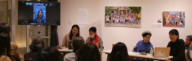 長谷川太郎&愛(息子夫妻)の写真展会場(箕面市民ギャラリー「チカノバ」)で、トークイベントが開催されました。タイ現地からも、ストリートチルドレン救援に当たっているクレーナム財団のスタッフや支援を受けて成長した元ストリートチルドレンなどがオンラインで参加。日本で里親活動に携わった方々とのトークを展開しました。長谷川愛が司会と通訳を担当。遠くは神奈川から来られた方など約30人の人々で、会場は満席でした。なお、写真展は明日17時で終了。