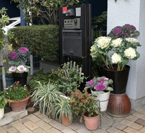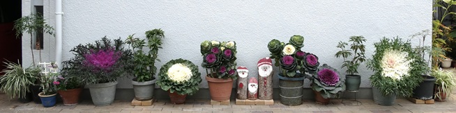 昨日、植え付けしたハボタンたちを朝のうちに事務所前に飾りました。今年は作業の時期が早かったので、切り株サンタはクリスマスまで残します。